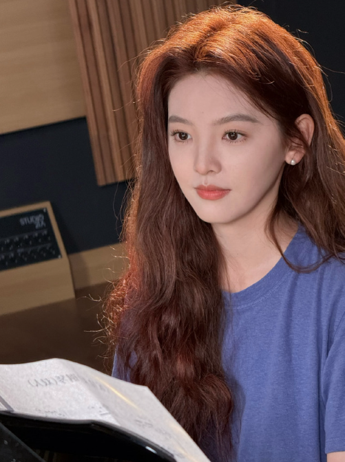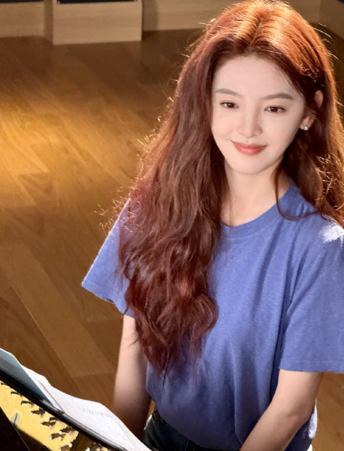 章若楠的蓝色小妆造, 玩忽感满满的, nice!
